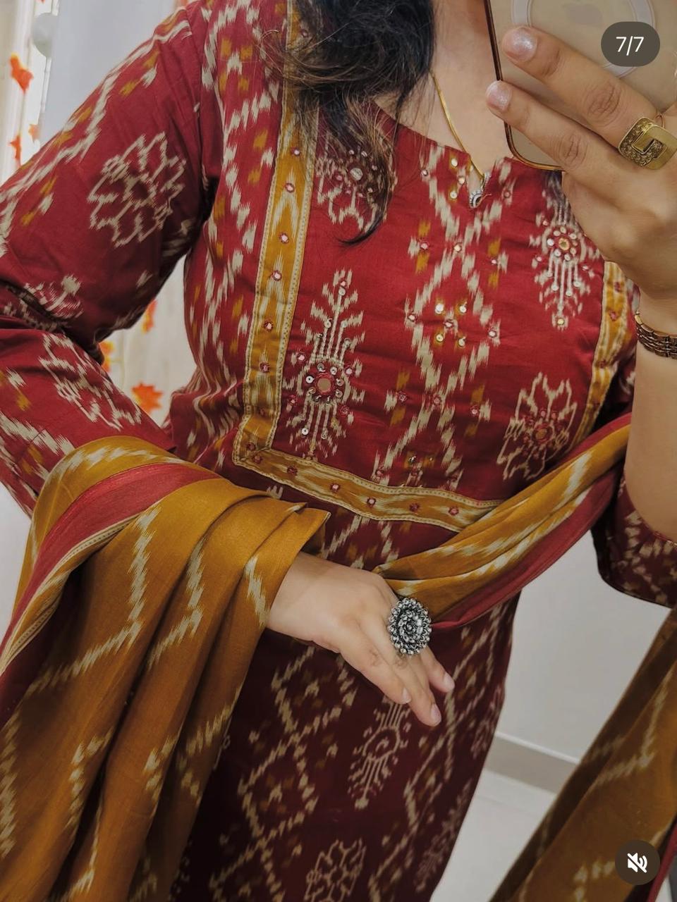Premium Cotton Embroiderd Kurti With Pant And Dupatta Set