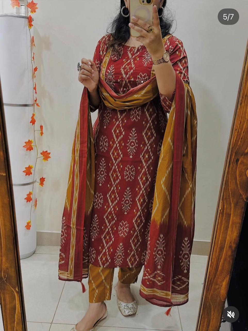 Straight Fit Cotton Kurti Pant & Dupatta Set